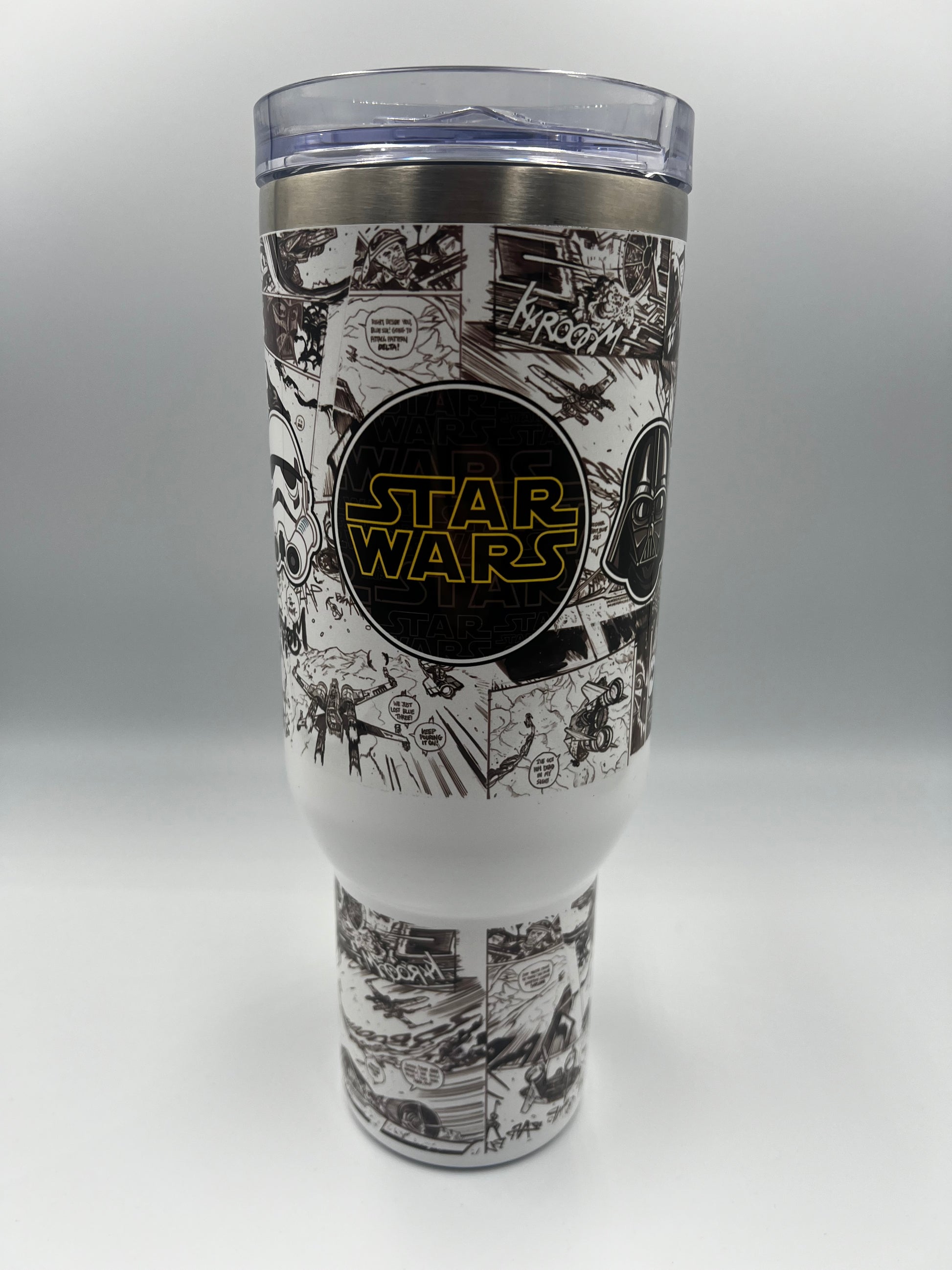 Take on the day (or multiple) like a true Jedi with this epic Star Wars 40oz Tumbler! Featuring your favourite characters in stunning sublimation, this tumbler holds a large 40oz of your favourite beverage. May the force be with you (and your hydration)!